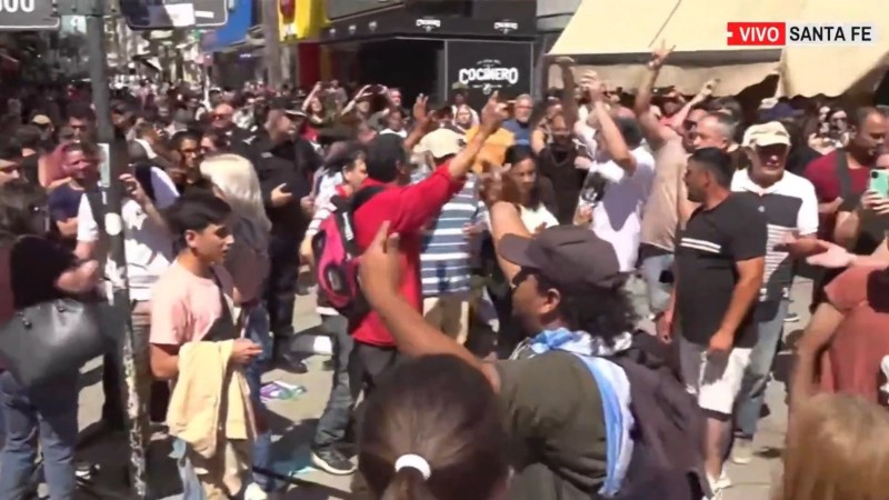 Milei tuvo que suspender una caminata de campaña en Santa Fe por protestas en su contra